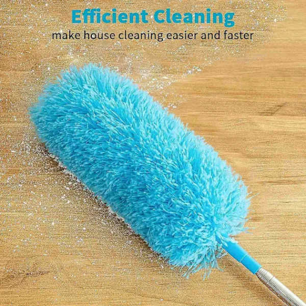 Vikbar mikrofiberdammvippa: Dammvippans huvud är tillverkat av mikrofiberborst som inte faller av, vilket har utmärkt sugförmåga. Den är väldigt mjuk och orsakar inte slitage på möbler. Ju mer du använder den, desto mer statisk blir den, vilket lätt kan locka till sig damm, pollen och hår. Gör rengöringen mer effektiv. (Ej lämplig för rengöring av element