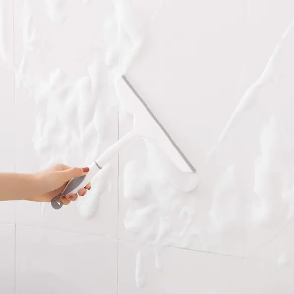 Hållbar och flexibel duschskrapa med vändbart och utbytbart silikonblad, utan vattenfläckar.