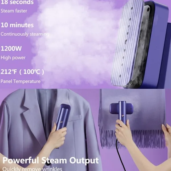 INTE MEN EFFEKTIV: 900g portabel design; 18s snabb klädångare; 10 minuters kontinuerlig ångning; 1200W och vattenförbrukning: 12g/min