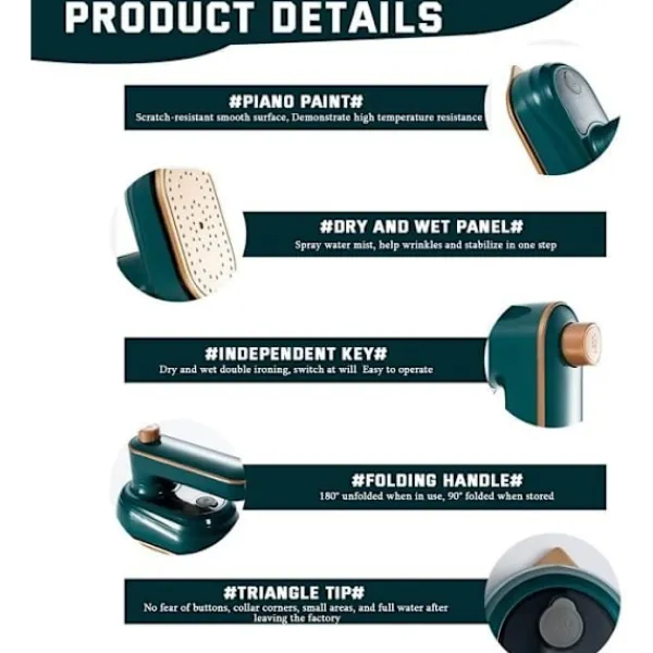 Portabel Strykmaskin: Handflatestorlek, mini-resestrykjärn passar lätt i resväskor och ryggsäckar (med kontakt). Våt och Torr Användning: Det mini portabla strykjärnet kan strykas torrt, och 80ml vattentanken kan också strykas med en knapp.