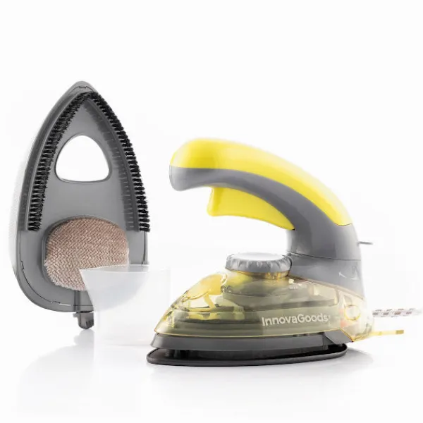 Ett kompakt och bärbart mini-ångstrykjärn med en originell 2-i-1-design som kan användas som ett vertikalt eller traditionellt horisontellt strykjärn, detta genom att vrida handtaget till önskad position (180º). Detta resestrykjärn är mycket bekvämt och enkelt att använda, bära med sig och förvara. Den har ångfunktion och justerbar temperatur (80-200 ºC). Dess kapacitet är 80 ml och dess effekt är 800 W. Den innehåller flera mycket användbara tillbehör, såsom en mätbehållare för att fylla vattentanken, en liten rengöringsborste och ett avtagbart luddborttagningshuvud som är perfekt för kläder, klädsel etc.