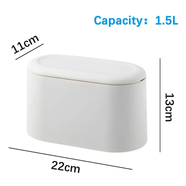 【Tryck på lock för skrivbordspapperskorg】Denna papperskorg med lock förhindrar att lukter rinner över och håller ditt skrivbord rent och snyggt. Lock med en fjäderknapp som öppnas med ett enkelt tryck, vilket är mycket bekvämt och snabbt. Papperskorg för skrivbord【Dubbelskiktsdesign】Bordpapperskorgen har en dubbelskiktsdesign och inbyggda snäppfästen, håller sopsäckar och innerbehållare säkert. Samtidigt kan den dölja sopsäcken bättre och göra skrivbordspapperskorgen vackrare. 【Högkvalitativt material】Denna skrivbordspapperskorg är tillverkad av PP-material, som är miljövänligt och luktfritt. Falltålig och hållbar, lätt att rengöra. Rund utan vassa hörn, bekväm i handen. Liten papperskorg【Liten storlek och stor kapacitet】Denna minipåse har en storlek på 22,5 x 11,2 x 12,5 cm, kapaciteten är cirka 2 liter, den rektangulära och ovala kantdesignen möjliggör större kapacitet samtidigt som den sparar utrymme på skrivbordet. 【Lämplig för en mängd olika scenarier】Denna bordpapperskorg är elegant och vacker, lämplig för många scenarier som matbord, kök, badrum, sovrum, kontor och bil. Du kan också använda denna minipåse som en kosmetisk papperskorg. Minipåse