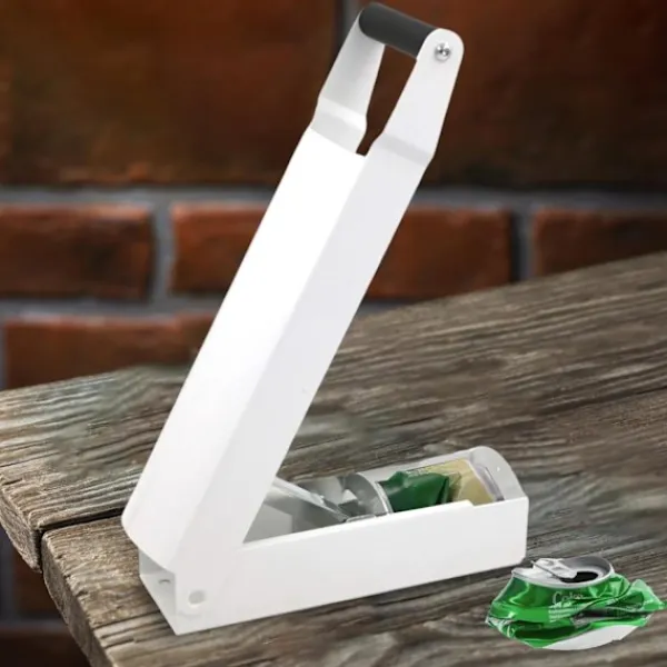 Aluminiumburksförstöraren kan krossa 12oz och 16oz aluminiumburkar för enkel återvinning. Effektiv enhandsmanövrering för att återvinna och minska storleken på hög aluminiumläsk, kolsyrat vatten, öl, vatten.