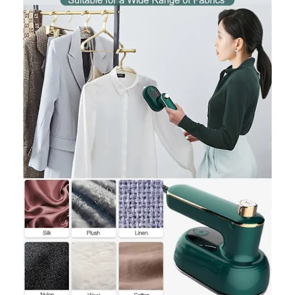 Effektiv och PortabelDen kraftfulla portabla strykjärnseffektiviteten gör livet mer raffinerat, tar enkelt bort rynkor på tyger som kläder, skjortor, gardiner, lakan och andra tyger, och kan läggas i resväskor och ryggsäckar, och kan bäras och användas när som helst, var som helst. Få dina kläder att se eleganta och kvalitativa ut på några minuter.