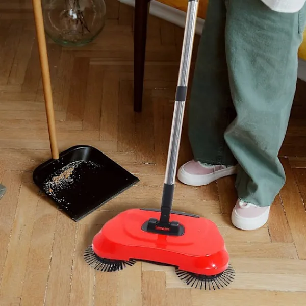 Handtryckssopmaskinen är ett multifunktionellt hushållsrengöringsverktyg som inkluderar sop, sopskyffel och papperskorg för din bekvämlighet. 360 graders roterande rengöringsborstar gör det enklare och mer ansträngningslöst att rengöra damm, hår och annat litet skräp i varje hörn av hemmet bara genom att trycka på sopmaskinen. Handtagets längd kan justeras i tre steg efter eget val utan att böja sig ner och sparar dig mycket mer ansträngning och tid. Sopmaskinen är designad för manuell drift utan el, så du behöver inte ladda den, vilket är mycket ekonomiskt och miljövänligt. Designad med sluten papperskorg, inget damm flyger uppåt, skyddar spädbarn och barn från hudallergi och bronkit och säkerställer god hälsa för familjer. Välj den för att göra hushållssopningen enklare och mer intressant.