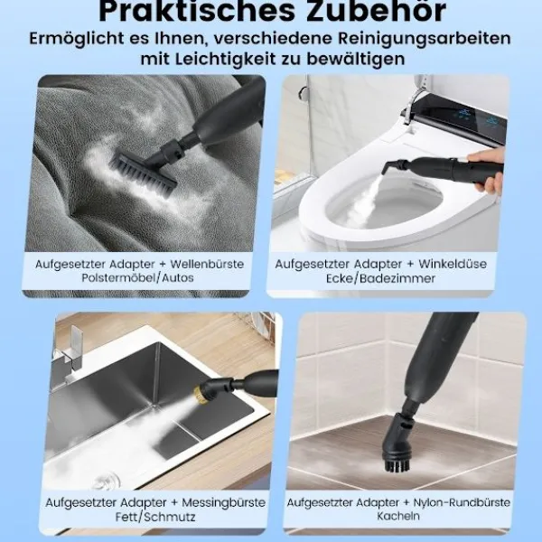Upplev bekvämligheten med en bärbar ångtvätt utrustad med viktiga tillbehör som nylon- och mässingsborstar, vinkelmunstycke och vågborste. Perfekt för bilar, klädsel, kök och badrum. Hämta ditt i dag för ett fläckfritt hem.