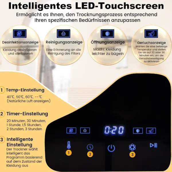 - Hög prestanda med en 800W motor som når 69°C för effektiv torkning och sanering