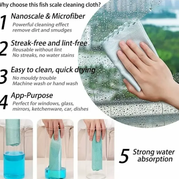 Bred tillämpning: fiskfjälldukar är lämpliga för rengöring av kök, handfat, glas, möbler, bilar, rostfritt stål och de flesta elektronik. Den kan till och med placeras på bordet för att torka händerna. Den kan hjälpa dig att göra det mesta av rengöringsarbetet.