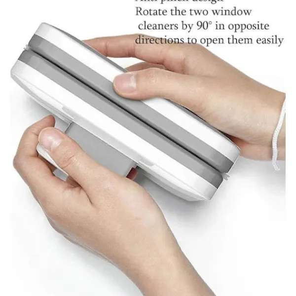 Anti-klämdesign gör att du enkelt kan öppna två fönsterrengörare genom att rotera dem i motsatta riktningar med 90 grader.