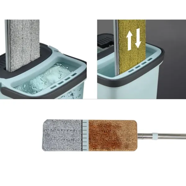 Moppen är utrustad meden tvåkammarhink med vridare. När du sköljer moppen, stannar smutsen kvar i smutsvattenbehållaren, medan när du vrider i den andra kammar, rinner vattnet in i smutsvattenskammaren medan du sköljer den i rent vatten. Även om städning inte är din favoritaktivitet, kommer du att älska dennainnovativa städapparat på nolltid.