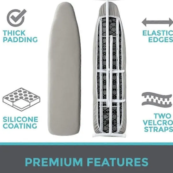 1, Vi bestämde oss för att göra strykningen snabbare och enklare än någonsin med vårt överlägsna överdrag för strykbräda! Överdraget har en innovativ silikonbeläggning som reflekterar värme (och inte absorberar den som vissa andra) för att göra strykningen mer effektiv, så att du kan få perfekta, skrynkelfria kläder på nolltid!
