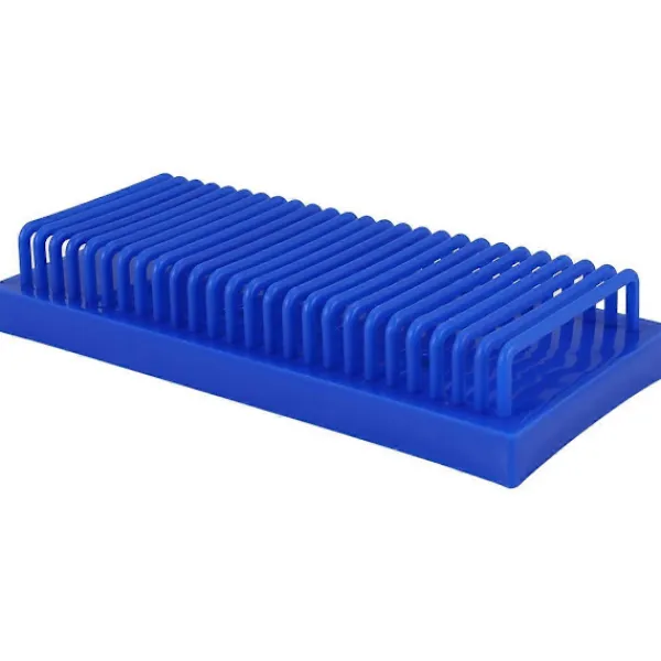Efter rengöring kan objektglasen från den vertikala elektroforestanken förvaras upprätt i klämman på ett torkställ och torkas.