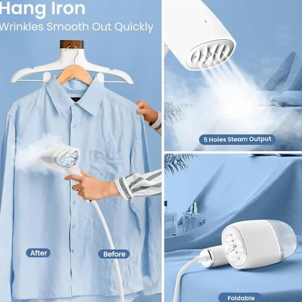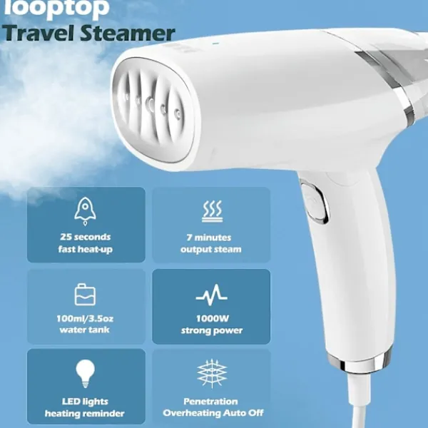Bärbar Klädångare Denna reseångare för kläder portabel mini är lätt och kompakt, den väger bara 0,45 kg och väger bara två mobiltelefoner. Endast 18,8 x 9,9 cm när den är hopfälld, så du kan enkelt lägga den bärbara ångaren i din ryggsäck.