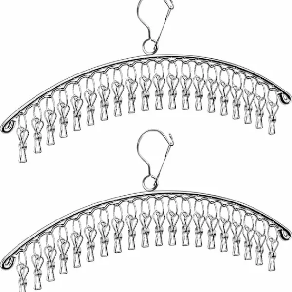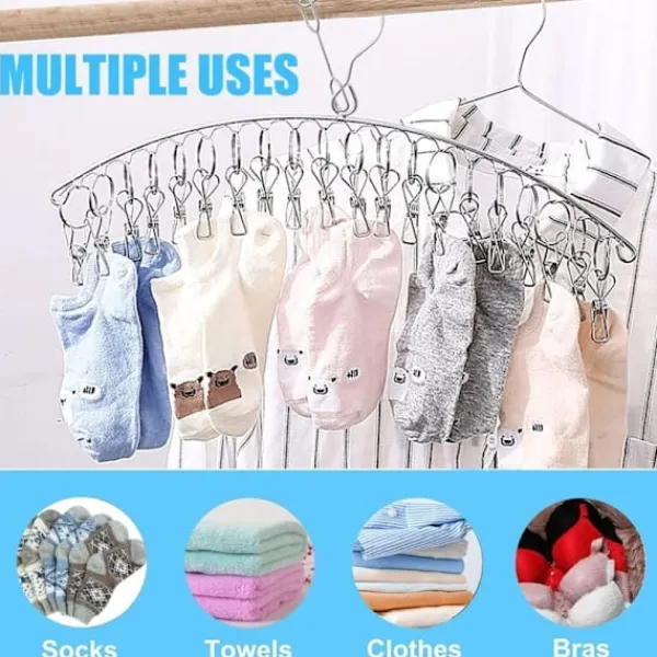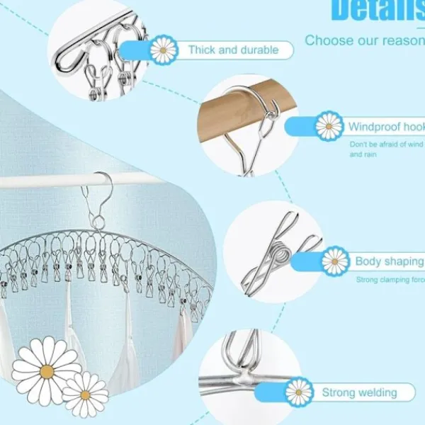 Vindtät och 40 klämmor: Hängande strumpor har en vindskydd för att säkerställa att hängaren inte blåses bort av vinden. Den är utrustad med 40 monobloc-klämmor i rostfritt stål som kan hänga många små föremål.