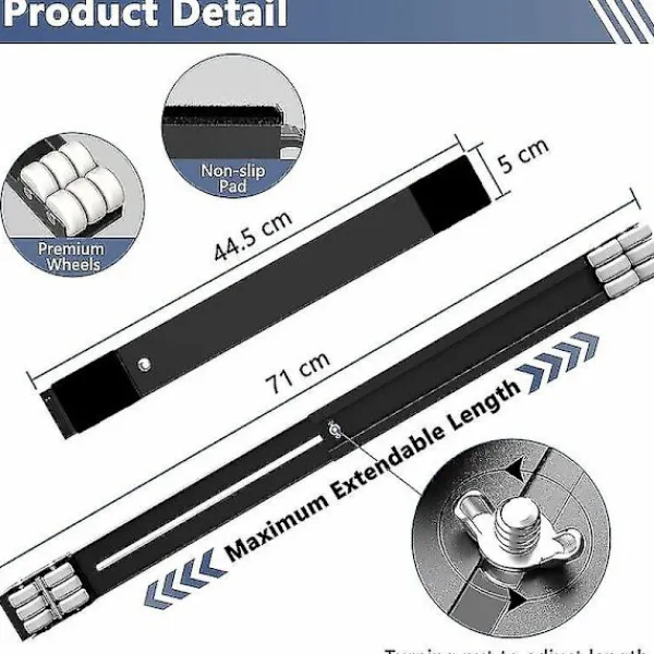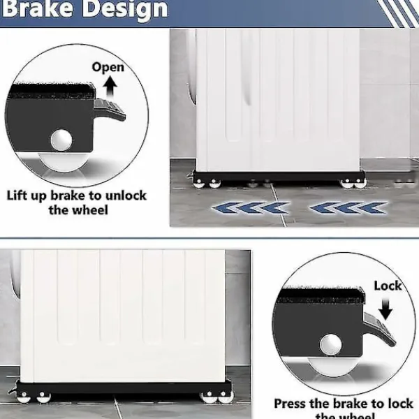 Justerbar storlek: Apparatvagnen kan förlängas från 44,5 cm till 71 cm för att rymma olika storlekar på möbler. Det finns en knapp längst ner på detta tvättmaskinsställ så att du kan justera längden för att hålla föremål efter behov. Hållbar och robust: Möbelvagnen har en tjock stålram med pulverlackering vilket är extremt hållbart. Apparatvagnar kan hålla upp till 300 kg. Den är lämplig för tunga möbler och apparater som tvättmaskiner, torktumlare, kylskåp, soffor, skåp etc. Uppgraderad rulle: Varje uppsättning maskinhållare är utrustad med 24 hjul, vilket ökar kontaktytan mellan hjulen och marken. Gör dig mer ansträngning och smidigare när du flyttar saker. Bromsbaser: Den rörliga rullen levereras med en halkfri matta för att göra möblerna mer stabila vid flyttning. Ena änden av rullen har en låsbar broms som förbättrar maskinbasens stabilitet och säkerhet när den inte används. Daglig användning: Denna mobila tvättmaskinsbas mäter 4 cm hög, vilket kan hålla möbelns botten torr och ventilerad för att förhindra korrosion och förlänga möbelns livslängd. Också lätt att flytta, vilket gör den dagliga rengöringen bekväm och effektiv.
