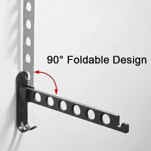 FÄLLBAR FÖR ATT SPARA UTRYMME: Vår väggmonterade klädtorkställning kan roteras och fällas 90 grader och kan fällas mot väggen när den inte används, vilket sparar utrymme. Perfekt för användning i sovrum, badrum, garderober, tvättstugor och garderober.