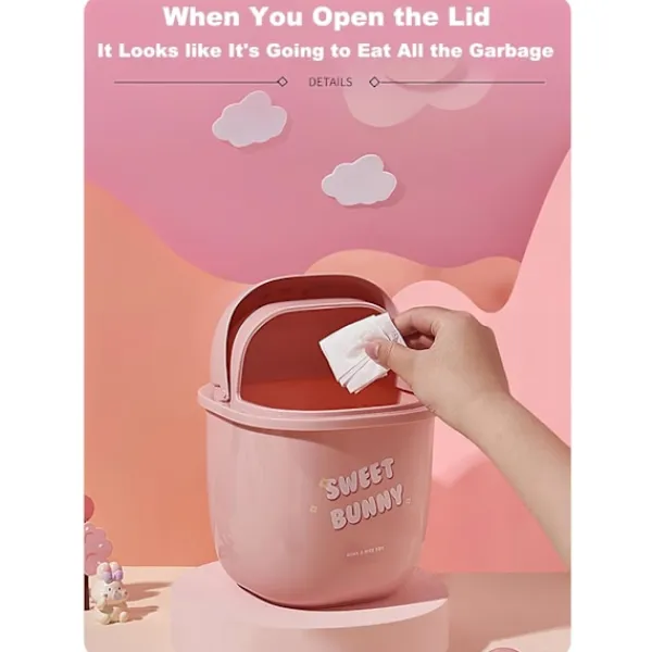 Härlig Form – Söt Kanin Djurdesign, När Du Öppnar Skrivbordssoptunnan Ser Det Ut Som Att Den Öppnar Munnen För Att Äta, Supersöt. Skräpet Exponeras Inte, Täck Locket För Att Förhindra Att Lukten Avges, Så Du Kan Bättre Njuta Av Bekvämligheten