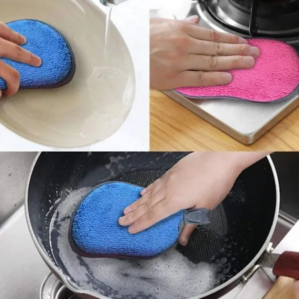 RENGÖR ALLT FRÅN GOLV TILL TAK SAMTIDIGT SOM DU RESPEKTERAR PLANETEN: Våra svampar har en ergonomisk form och har två sidor för mer rengöring.effektivitet, å ena sidanfrostadför att skrubba dina grytor, köksredskap, disk, non-stick-pannor, spisar, bänkskivor, spishällar och diskhoar eller till och med golv, badrum,wc och en sidomjukare för mer känsliga ytor