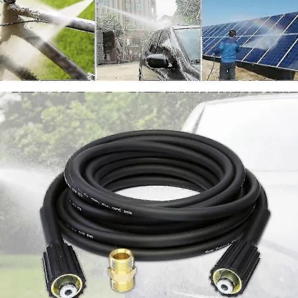 Funktioner: 1/4″ högtrycksförstärkt flätad slang. Levereras med M22 hankoppling för att göra denna slang till en förlängningsslang. Passar högtryckstvättar med M22 (14 mm) skruvgänga på både sprutpistol och maskinutlopp. Använder höghållfast material, förlängd livslängd, väder- och nötningsbeständig. Specifikation: Material: PVC + gummi Längd: 10 m / 32,81 fot MAX arbetstryck: 180Bar / 2610PSI Anslutning: M22/14 mm hona till hane Paketvikt: 1250 g / 2,76 lb Paketstorlek: 300 * 300 * 50 mm / 11,81 * 11,81 * 1,97 tum Obs: Se till att dessa anslutningar är kompatibla med din maskin och spruta. Paketet ingår: 1 * Förlängningsslang