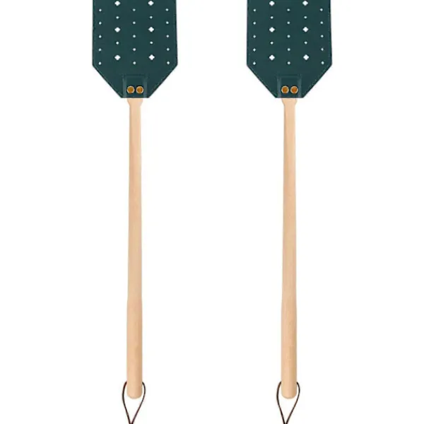 Produktmaterial: Flugsmällan i trä är gjord av dubbelsidigt läder, slät och lätt att rengöra med en trasa eller pappershandduk. Det runda handtaget i massivt trä ger ett bekvämt grepp, och den förstklassiga läderdesignen och nitningen säkerställer dess hållbarhet.