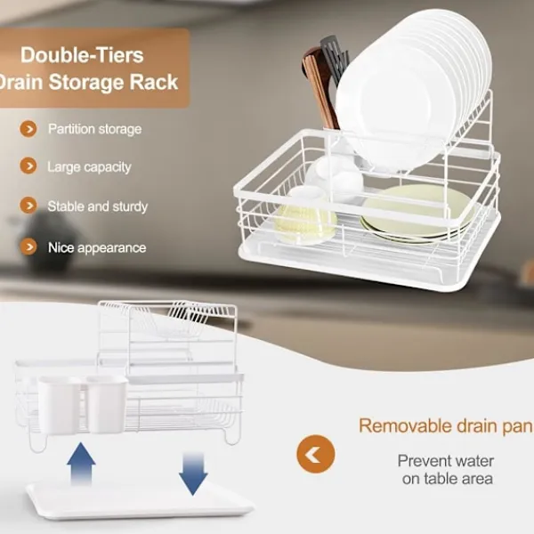 Den 2-våningsdesignen på detta diskställ ger mer utrymme utan att kosta mycket bänkutrymme, vilket gör det mycket bekvämt att använda. Perfekt för små kök och små hem.