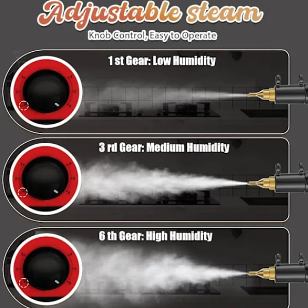 ✅ 【6-nivåers justerbar ratt】 Den handhållna ångrengöraren har en 6-nivåers justerbar ratt, du kan justera ångan för att kontrollera ångintensiteten för att möta dina olika dagliga rengöringsbehov. Samtidigt släpper denna handhållna ångrengörare ut cirka 3 bar