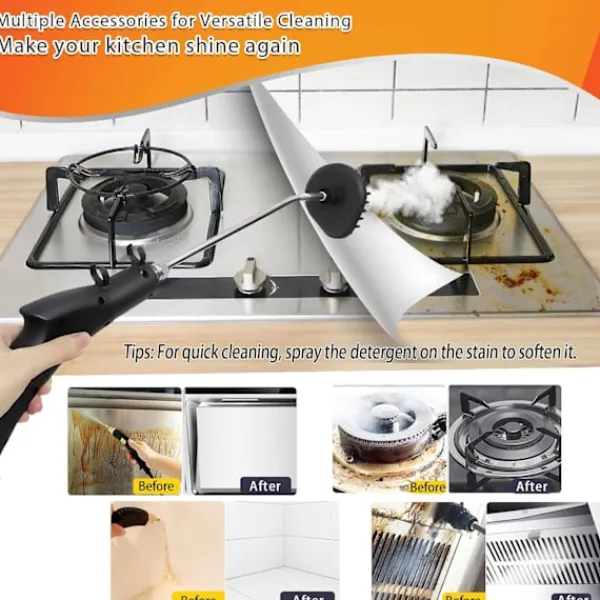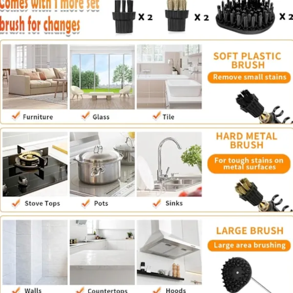 ✅ 【Tre olika borsthuvuden】 Med 3 olika borsthuvuden kan högtrycksångaren inte bara användas för att rengöra köket, rengöra väggen, spisen, röken, mikrovågsugnen, tvättmaskinen, kylskåpet, bilen och mattan, utan kan också användas i stor utsträckning i