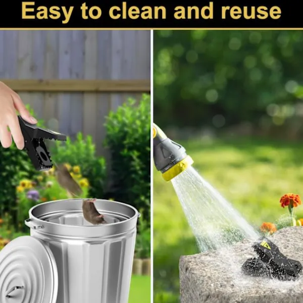 Giftfri, Mer Hygienisk Vår musfälla använder inte giftiga kemikalier eller gifter. Mer miljövänlig, den undviker giftig kontaminering eller oavsiktligt intag av djur. När en mus fångas kan du ta den andra sidan av fällan för att enkelt öppna den och slänga musen utan att röra den för att undvika att sprida bakterier. Lättare att rengöra än traditionellt trä, den lämnar inga lukter eller spår.