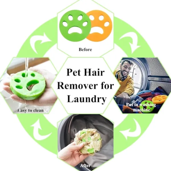 8-Pack Anti-Hår Tvättmaskin Anti-Hårborste Husdjur Tvätthår Fångare (Grön och Orange) Tvättmaskin och Torktumlare för Hundhår Katthår