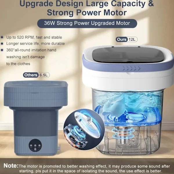 【Stor 12L Kapacitet för Effektiv Rengöring】Till skillnad från traditionella mini-tvättmaskiner har vår uppgraderade mini-tvättmaskin en generös kapacitet på 12L, vilket gör att du kan hantera mer tvätt på en gång. Detta innebär mindre tid för tvätt och mer tid för dig själv.