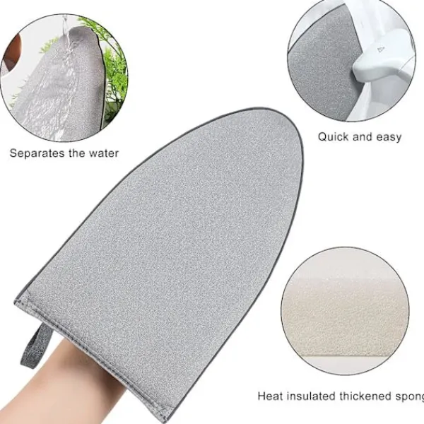 ÅNGSTRYKJÄRNSHANDSKE – Den värmebeständiga ånghandsken är tillverkad av tjockt svampmaterial som kan isolera värmen, motstå höga temperaturer och skydda din hand från den heta ångan. Den vattentäta ytan isolerar helt och hållet fukt och förhindrar att ånga tränger in i handsken. Nätfickan på baksidan gör att dina händer ventileras och känns bekväma.
