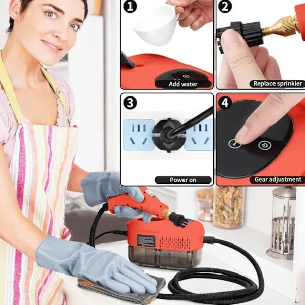 【Kraftfull Ångtvätt】2500W högtrycksångare för kraftfull rengöring, hem ångtvätt inkluderar förlängning av det böjda stångmunstycket, stålborste, borste, stor borste med flera kombinationer och samlokalisering för djuprengöring