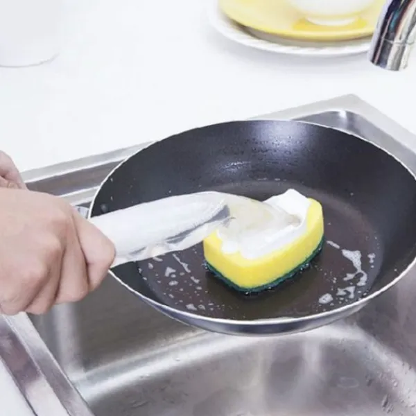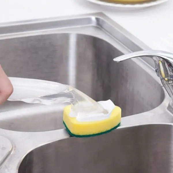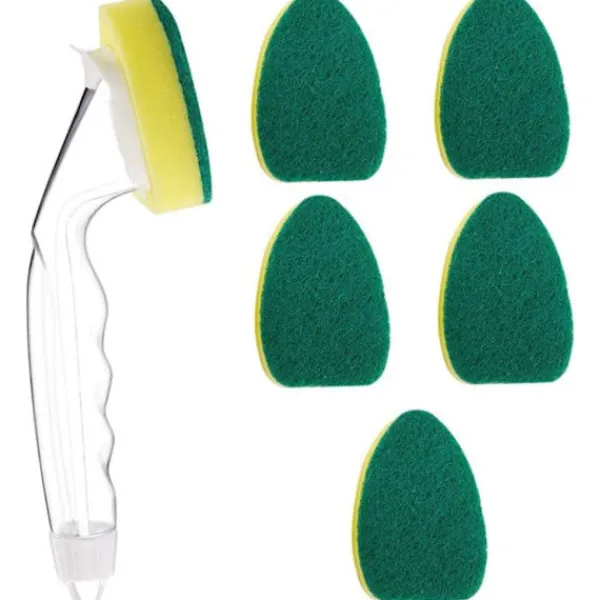 Set Inkluderat: Diskborstesvampsetet innehåller 1 diskborstshandtag och 6 utbytbara svamptoppar totalt. Funktion: Diskborstshandtaget kan fyllas med diskmaskinsvätska för att enkelt och snabbt rengöra dina tallrikar, kastruller och grytor. Hängöglan på handtaget är lätt att hänga. Enkel installation: Köksrengöringssvampen är lätt att installera, tryck bara försiktigt tillbaka, lås sedan svampen väl, så att handtaget inte är lätt att falla av. Med handtag: Den platta rengöringssvampen har ett ergonomiskt avtagbart handtag för bekvämt grepp. Det finns hål i botten av handtaget, och diskmaskinsvätskan rinner ut automatiskt. Svamp från 2 sidor: Diskmaskinssvampen har 2-sidig design. Den något hårda svampen är lämplig för att ta bort envisa fläckar, och den mjuka mjuka sidan är lämplig för att rengöra en slät tallrik.