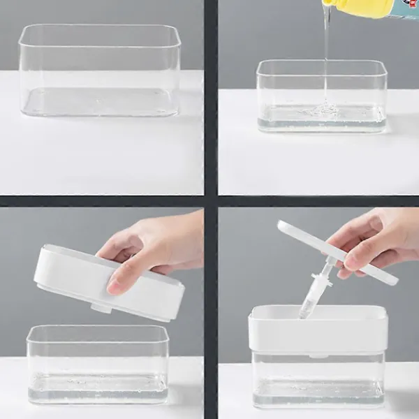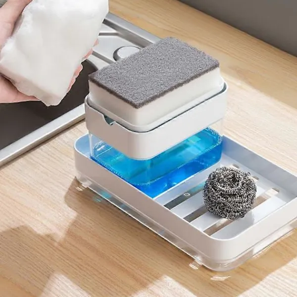 1. Dosera stora mängder diskmedel utan ansträngning, dosera enkelt och rymmer upp till 390 ml vätska. Flytande tvålbehållare för diskbänk. 2. Lägg mindre tid på att diska genom att använda en enkel tvålbehållare som gör att du kan diska snabbare och minska tiden du spenderar vid diskbänken. 3. Eliminera röran vid diskbänken! Diskmedelspump för köket med tillhörande hållare rymmer svampar, disktrasor och rengöringsdukar på ett bekvämt ställe samtidigt som den håller vatten borta från köksbänken. Vi har också ett lock för svampen så att den kan torka snabbt. 4. Spara tid och tvål – Applicera lämplig mängd tvål på svampen åt gången. Kan hjälpa till att minska slösad tvålvätska eftersom du alltid kan använda en avvägd mängd. 5. Lämplig för alla typer av flytande tvål. Lämplig som en gåva till din älskade person.