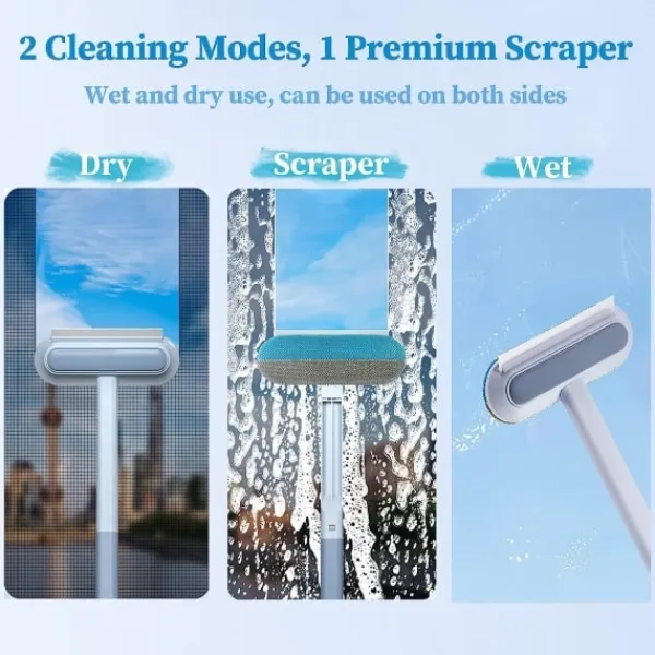 4-i-1 fönsterrengörare: Denna fönsterputsare levereras med en skrapa och en mikrofiberduk. Skrapan är gjord av naturligt mjukt gummi, som har god tätning och seghet, och kommer inte att lämna repor på glaset. Samtidigt kan mikrofiberduken enkelt torka bort vattenmärken och damm på glaset, vilket gör dina fönster omedelbart torra och ljusa.