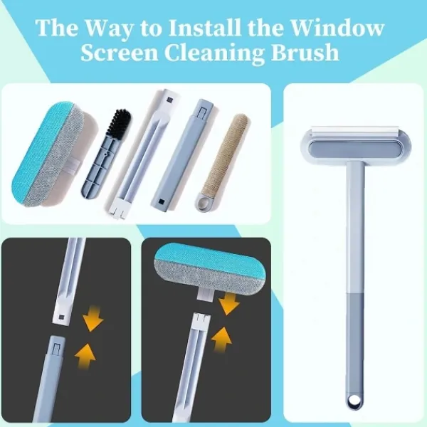 Fönsterrengörare med förlängningsbar stång, lätt och multifunktionell: Fönsterskärmrengöraren har ett avtagbart och förlängt handtag med en snäppdesign, som är lätt att montera och kan monteras fritt för att torka damm från olika höjder.