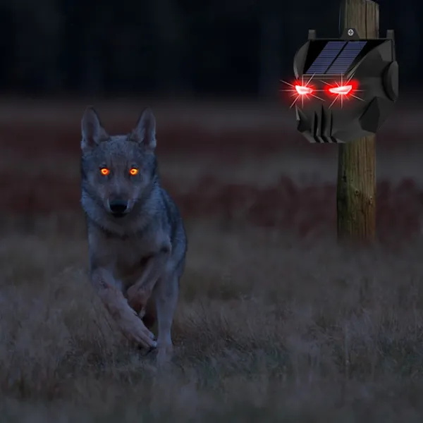 Den solcellsdrivna blinkande djuravskräckaren avskräcker effektivt ett brett spektrum av skadedjur, inklusive fåglar, gnagare och andra oönskade djur, från att komma in på din egendom. De blinkande röda LED-lamporna efterliknar ögonen på ett rovdjur och skrämmer bort skadedjur utan användning av skadliga kemikalier eller fällor. Detta ger en säker och human lösning för att skydda din trädgård, gräsmatta eller andra utomhusområden från skador orsakade av skadedjur. Perfekt för användning i trädgårdar, gårdar, uteplatser, balkonger och andra utomhusutrymmen där skadedjursbekämpning behövs. De blinkande lamporna är särskilt effektiva på natten, när många skadedjur är som mest aktiva.