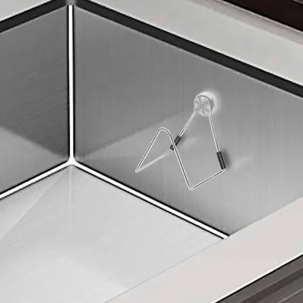 Enkel Installation: Detta fäste kan installeras i en diskho av rostfritt stål utan verktyg. Motmagneten fästs på baksidan av diskbänken med hjälp av en självhäftande film. OBS: Fästet är inte lämpligt för keramiska diskbänkar.