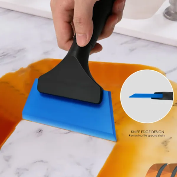Den mångsidiga skrapan är perfekt för rengöring av fönster, duschdörrar, bilvindrutor, kakel, dimmiga speglar, glas, bänkskivor. Denna skrapa är perfekt för smala plattor och svåråtkomliga områden.