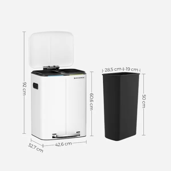 - Innermått för hinken: 28,5 x 19 x 50 cm (L x B x H)