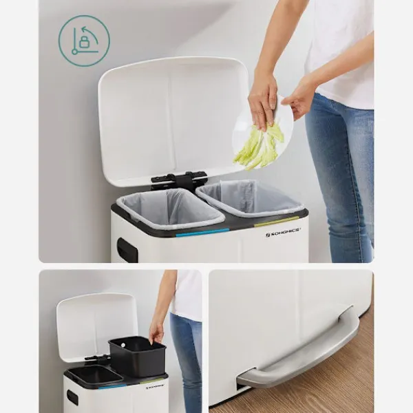 HOPPA I HINKEN: Du kan helt enkelt lyfta de två innerhinkarna ur soptunnan. Om en papperskorg skulle gå sönder kan du enkelt rengöra soptunnan; Tack vare öppningen på baksidan av innerkorgen är det också enkelt att byta papperspåsar