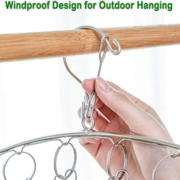 Vindtät krok – En lättlåsande spärr förhindrar att kroken oavsiktligt lossnar när den hängs i blåsiga områden eller kraftiga vindbyar. Den övre designen sparar värdefullt utrymme samtidigt som den minskar torkningskostnaderna.