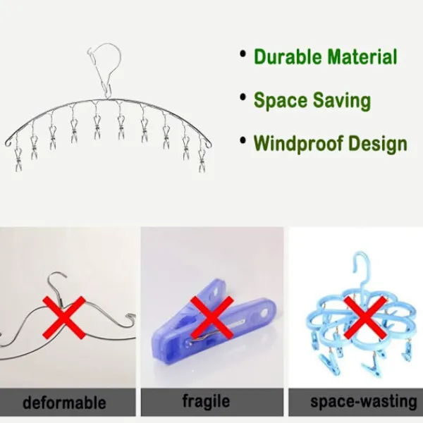 PLATSBESPARANDE OCH MÅNGSIDIG – Häng upp till 10 små föremål på en kompakt plats för mångsidig torkning eller förvaring. Slank design som en standardgalge. Perfekt för garderober, lägenheter, duschdraperistänger, tvättstugor, utomhusklädstreck och mer.
