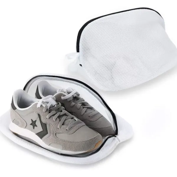 Förstärkt tvättnät: tillverkat av högkvalitativt trelagers tyg, det skyddar inte bara dina skor från slitage, utan fångar även grovt sand i påsen och är permeabelt för att förhindra skador på tvättmaskinen.