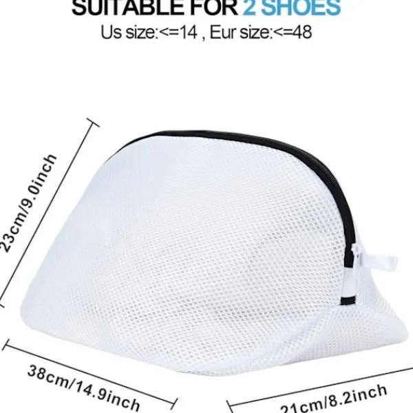 Produktförpackning: inkluderar två stora storlekar (36 cm x 20 cm x 20 cm) av tvättnät för skor, varav en kan användas som reserv för dina individuella behov.