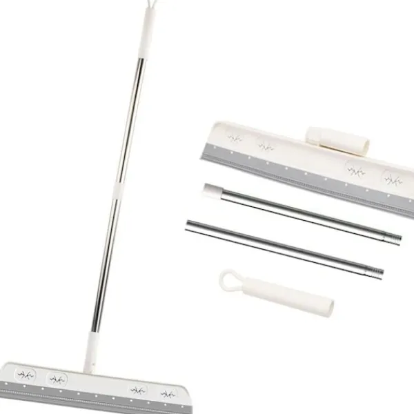Silikonskrapa för golv, avtagbar vattenskrapa, skumborste för vattenrengöring, golvskrapa med gummi teleskophandtag Duschglas, badrumsskrapa,