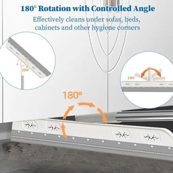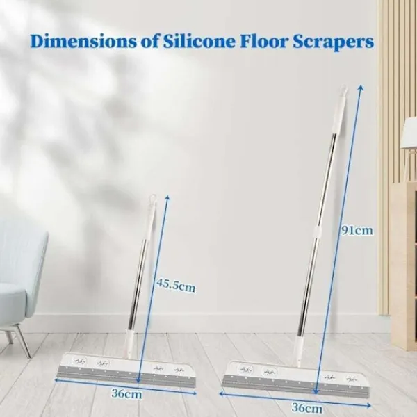 Slitstarkt material: Silikonskrapan är mycket slitstark och slits inte ut även på ojämna golv. Draghandtaget är tillverkat av högkvalitativt rostfritt stål, och lederna och handtagen är gjorda av vit PP-plast, som är slitstark och inte lätt deformeras. 180° roterande skrapa: Skrapans anslutningsled kan roteras 180° för att enkelt rengöra under sängar, skåp, sprickor och hörn. Rengör enkelt försummade hörn, reptåliga glasytor och ta snabbt bort stora ytor med stillastående vatten. Humaniserad design: Den extra stora 36 cm skrapan, varje drag gör att du kan torka av en stor yta och arbeta snabbare. Skrapans längd kan justeras från 45 cm till 91 cm. Hål i handtaget gör att den kan hängas på m Multifunktionell skrapa: Golvskrapan är lämplig för våta golv, fönster, kakel, garage etc. och rengör enkelt vatten, smuts, hår och damm. Den kan också användas som fönsterputsare för att torka hem- och bilfönster, en bra hjälpreda i livet. Skrapan repar inte: Silikonskrapan är mjuk och repar inte. Den kan snabbt torka golv, fönster och andra ytor, vilket inte bara sparar energi och tid, utan också rengör mycket bättre än handdukar eller moppar.