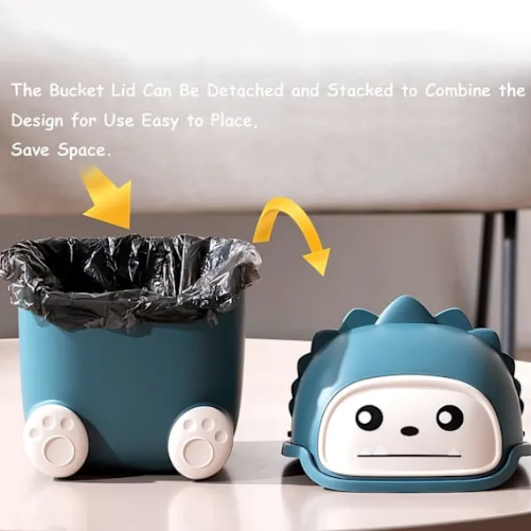SÖT FORM – Söt tecknad djurform, när du öppnar papperskorgen ser det ut som att djuret öppnade munnen för att äta, supergullig, förseglad och luktfri, förhindrar att skräpet rinner ut, skräpet är inte exponerat, täck locket för att förhindra att lukten sprids, så att du bättre kan njuta av bekvämligheten med denna papperskorg.