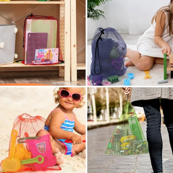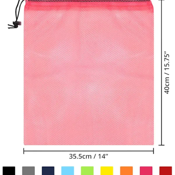 10 TVÄTTPÅSAR MED DRAGSKO I NYLON: Detta set innehåller 10 flerfärgade nätpåsar, som vardera mäter 35,5 x 40 cm (14 x 15,75 tum). Dragskomekanismen på varje påse säkerställer att dina föremål inte faller ut. De blandade påsarna är temperaturbeständiga och lämpliga för tvättmaskiner/torktumlare.