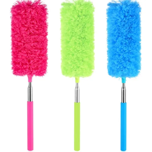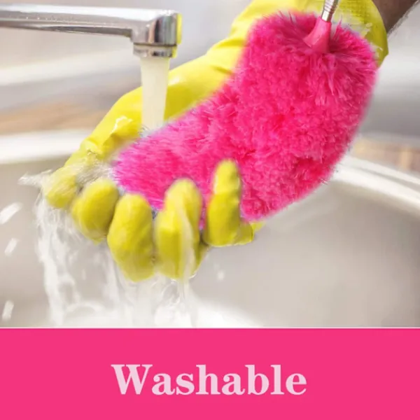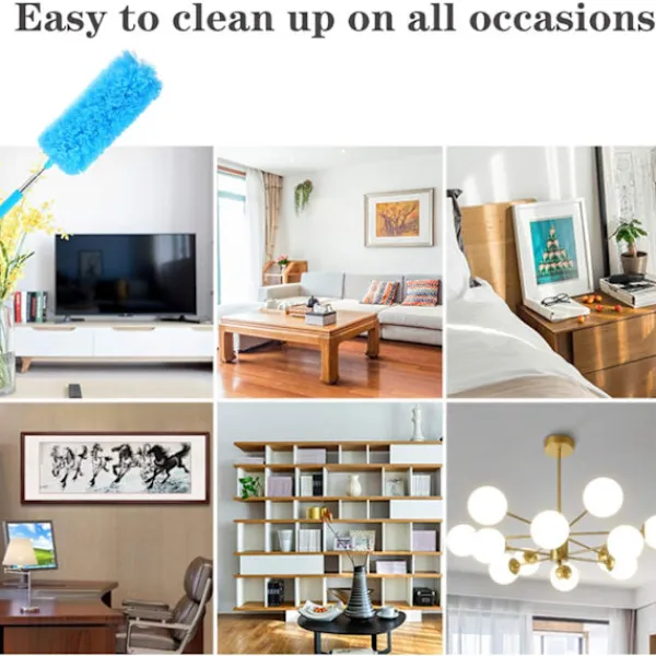 Flexibelt böjbart huvud: Mikrofiberhuvudet kan böjas i flera vinklar för att damma ditt rum för att snabbt få bort dammstrimmor. Den kan användas för att damma takfläktar, fönsterbrädor, hörn, spindelväv, tak och andra svåråtkomliga platser.